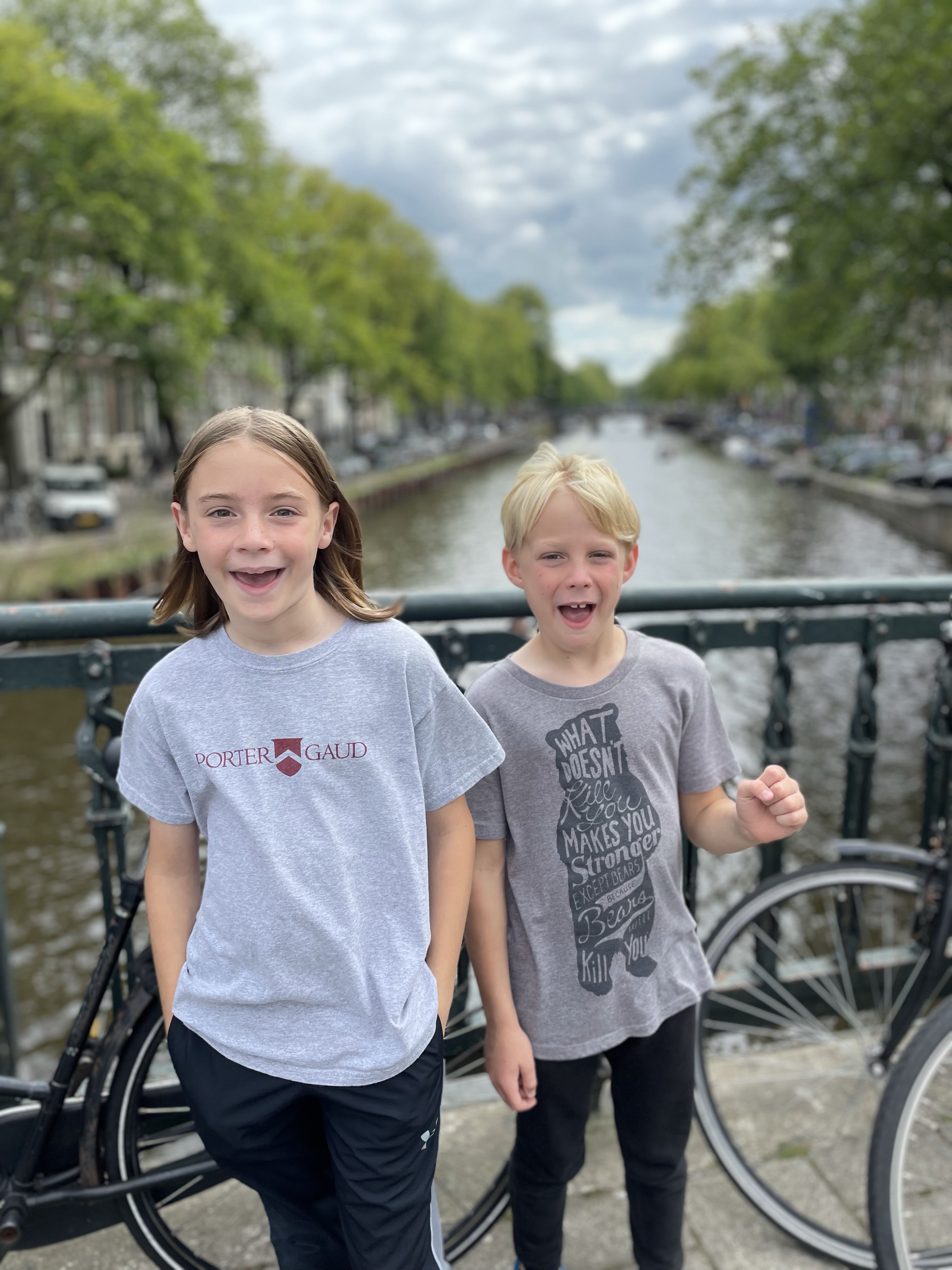 The boys in front of the Anne Frank House. The museum entrance is around the corner.