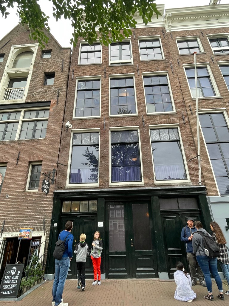 There is a free English audio guide for the tour. The museum operators are very cautious now about how many people can enter the premises and all tickets have to be purchased online in advance. The museum encompasses a bit more than just the building where the Frank and Van Pelz families hid. I found it really special that once you are in the exact secret annex space, even the audio guide goes quiet. You can read information on the walls, but it is treated like a sacred space. We have no pictures from the inside as they ask you not to take any photos. When Otto Frank, the only surviving family member first returned to the annex, most of the family’s things had been removed. He decided to leave it that way to honor what had happened, though he did save some things left behind and on the walls to preserve the history and after it was restored/made into a museum, those things were placed back in there.Β