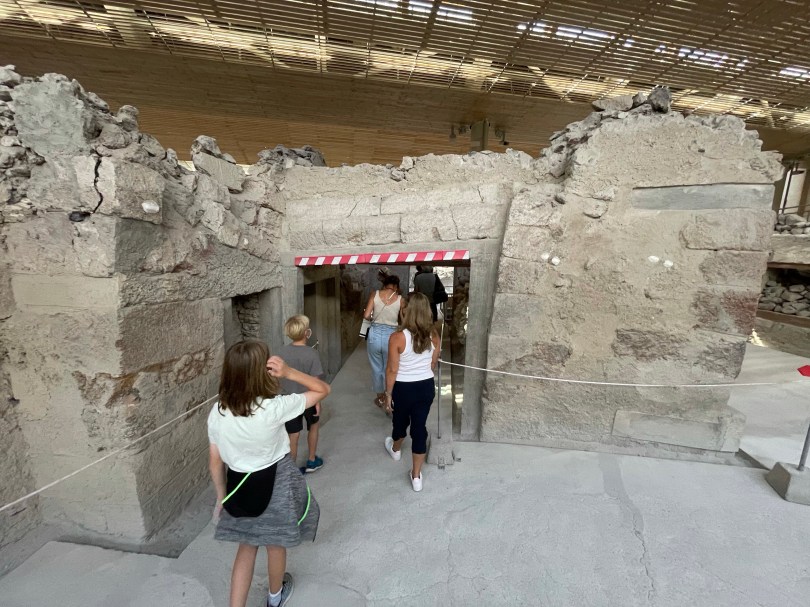 After Fira and a few stops we made for family photos, we made our way to Akrotiri. Again, not being a good historian, I won’t do this site justice but here’s my general overview: