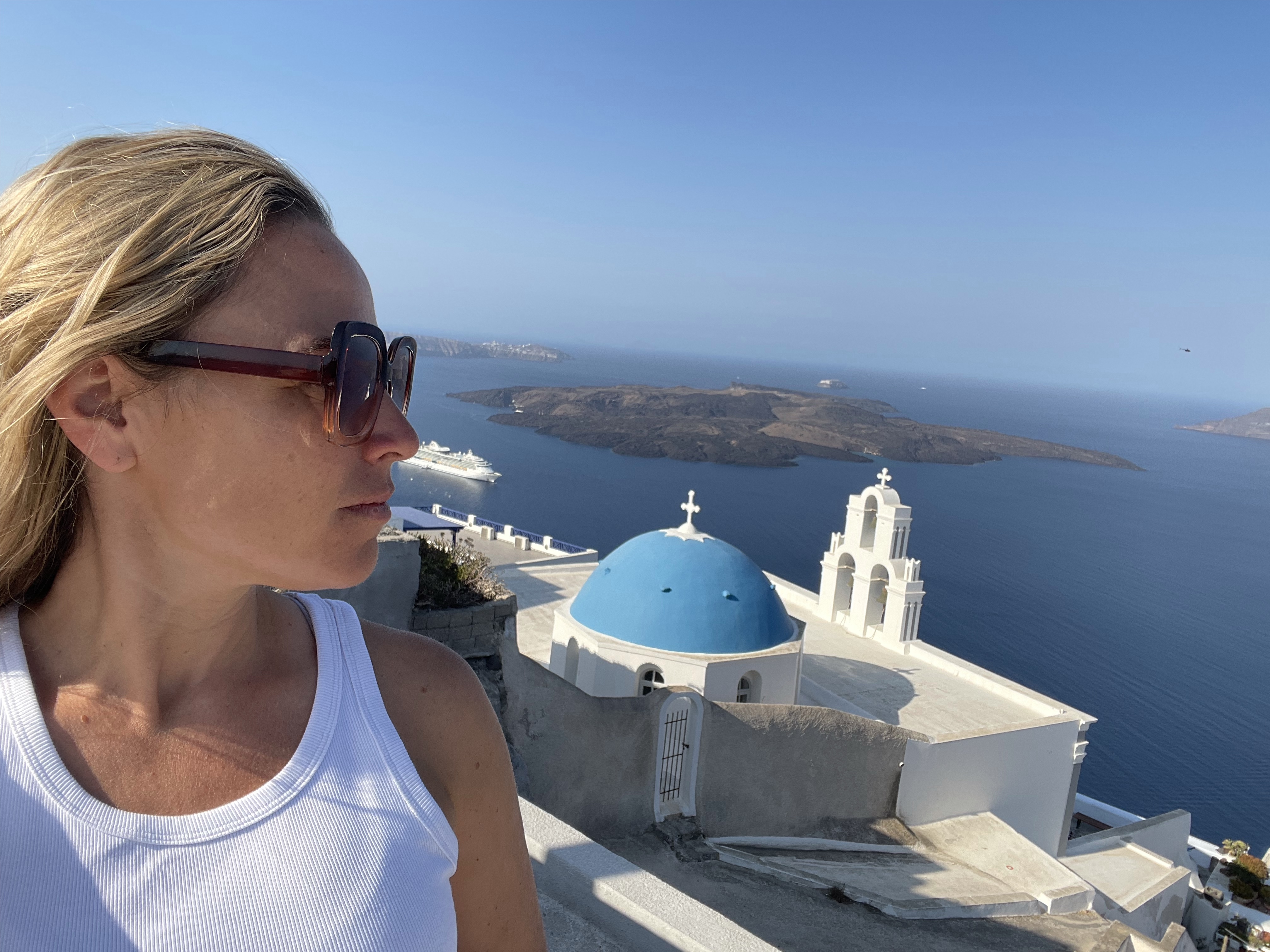 Our final 3 nights were in luxurious Santorini. I felt like we went from the equivalent of Islamorada in the Florida keys to South Beach. From a laid back vibe to high end everything. I’ll admit, getting off the crowded ferry at the port, I questioned our selection of the island. There were so many people, buses, drivers, it was hard to even pick your name out from the sea of name plates being held up.