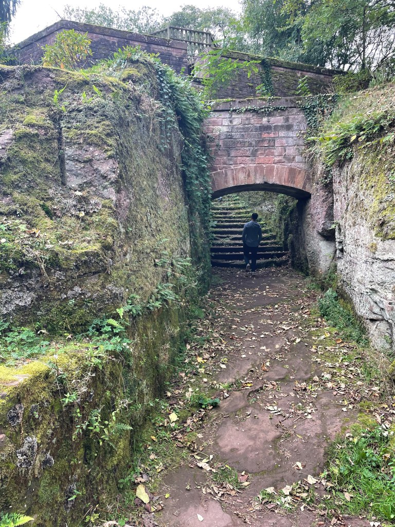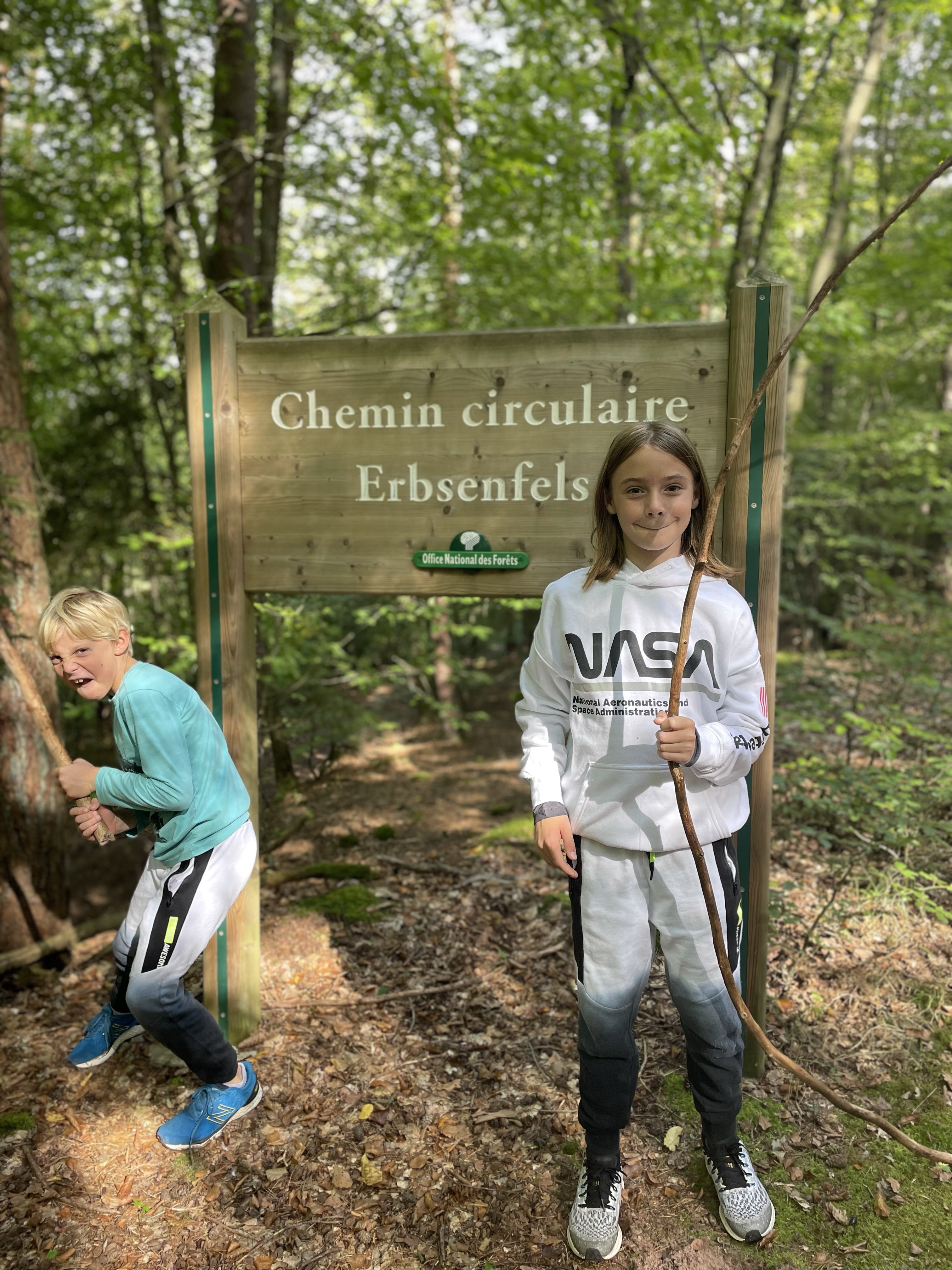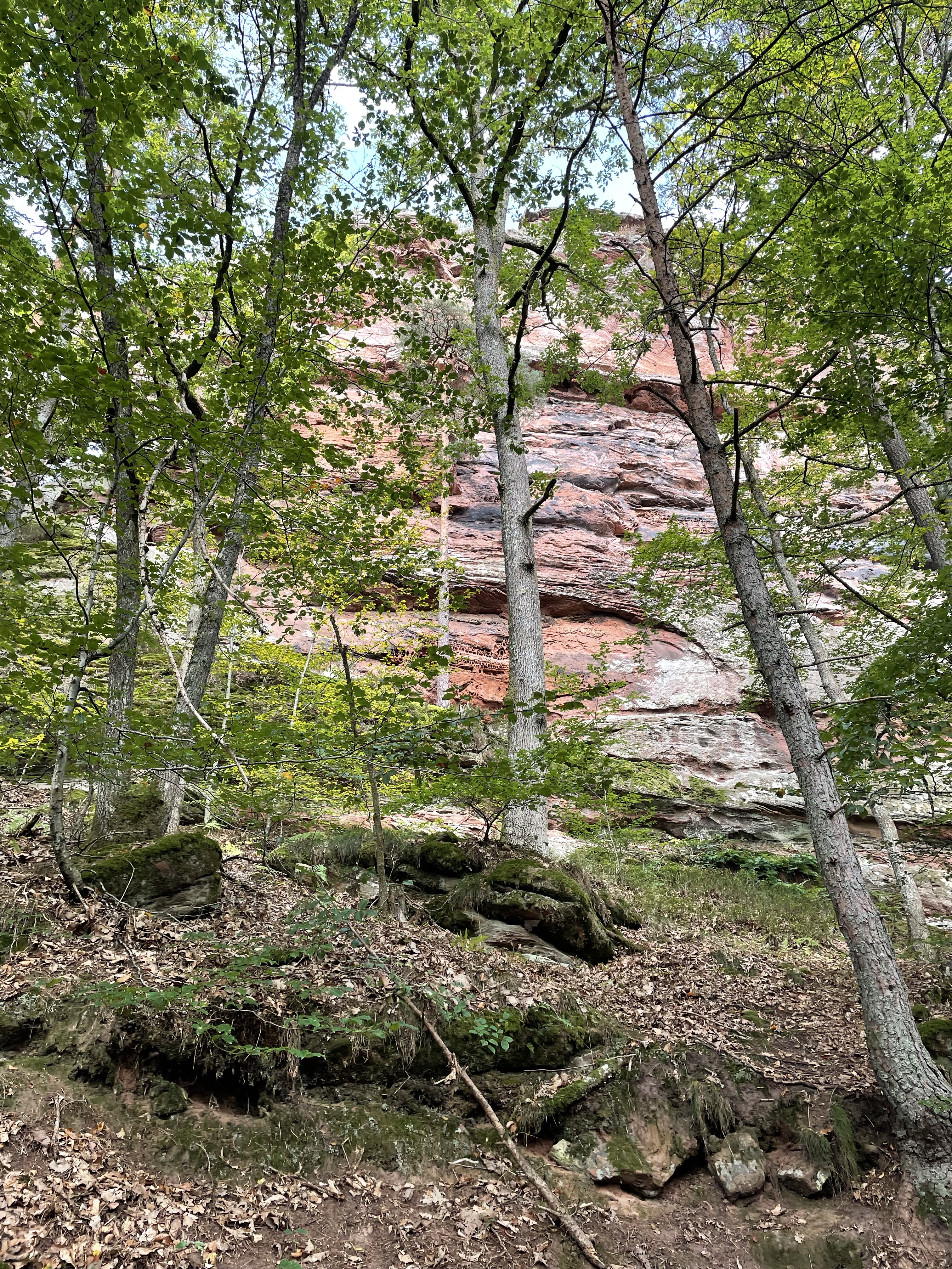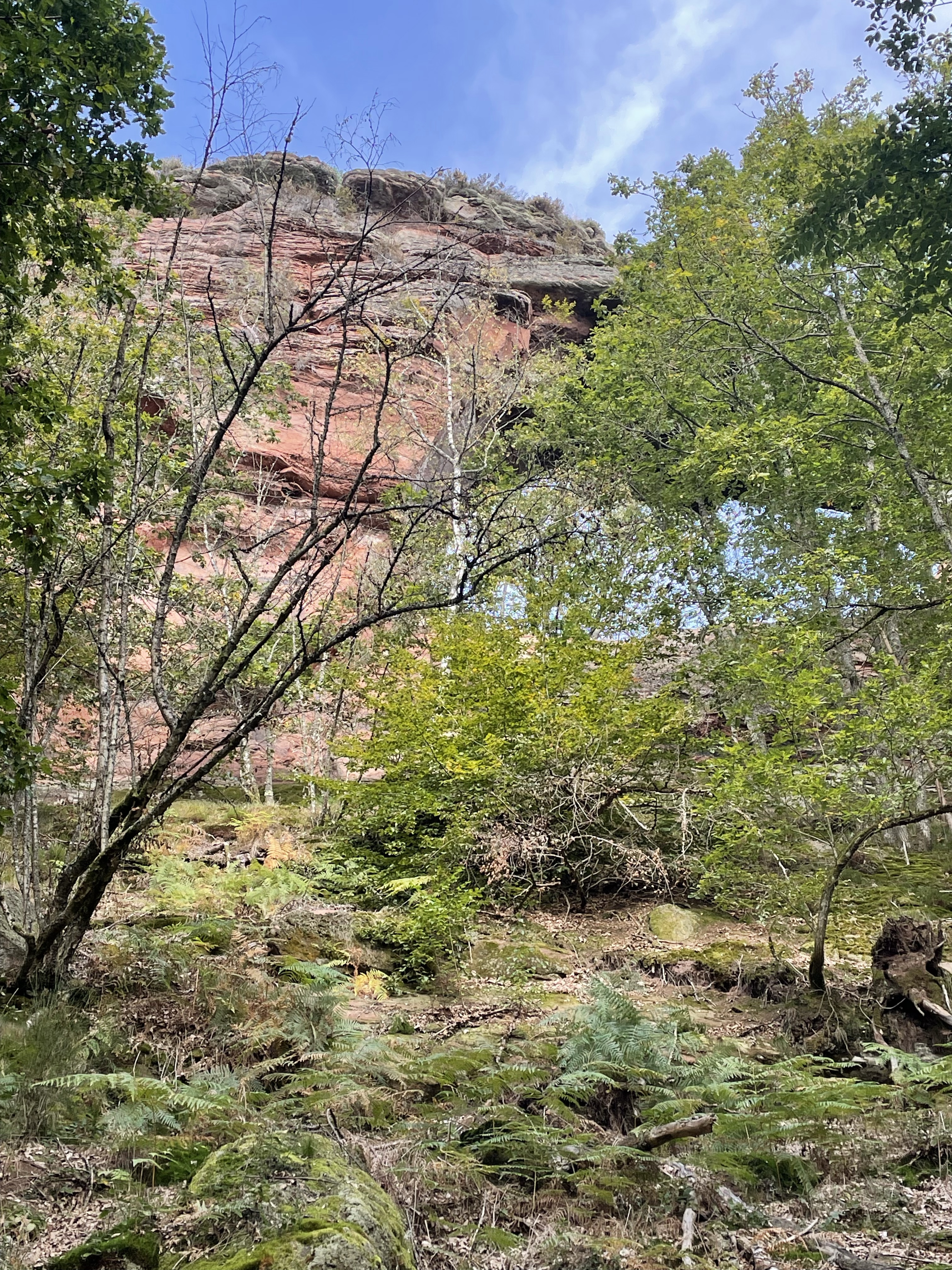 Étang de Hanau. This hike was really well marked, had several different terrains, and was slated to take us a couple of hours for 4 miles or so. There is a crazy tall tower (Château Waldeck) on this hike, but the path to it was closed. Probably the coolest thing we got to see, though, were these super old red rock arches that were formed 240 million years ago! They were unexpected for me (because I read very little about this hike prior) and they are the nesting grounds of peregrine falcons. Due to this, you’re not allowed to climb on the red rocks, which made Mason a bit sad.