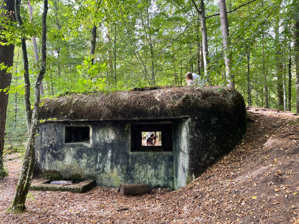 Also on this hike, and probably Josh’s favorite site, were two bunkers from the Maginot Line (defense lines the French built before WWII but which proved ineffective against German war tactics). One was basically buried, but the other was accessible to enter (annnnnd climb on top of, as Mason and Caleb did).