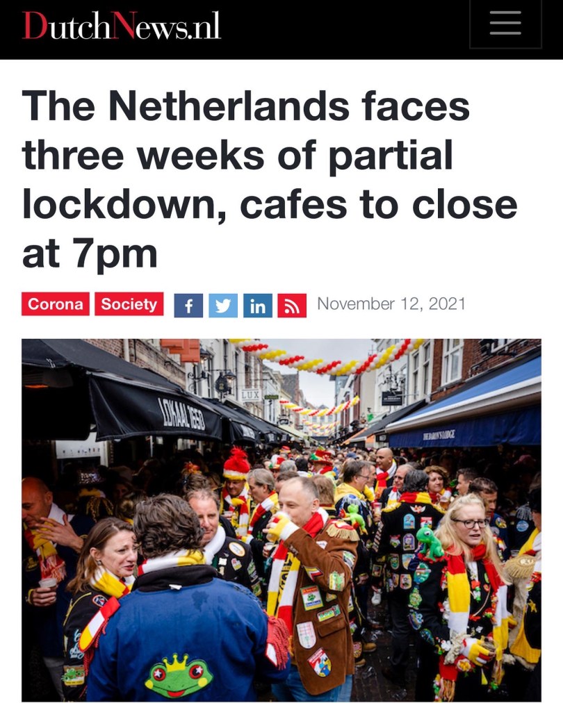 Due to all of this, you’ve likely seen headlines about countries like Austria going back on full lockdown. They tried to initially put the burden on the unvaccinated, but now have gone into full lockdown. Austria also has some of the lowest vaccination rates in Europe. Here in the Netherlands, there are what I call “lockdown light” restrictions. Masks are required indoors again. Bars/cafes/many stores require vaccine proof or recent negative test results and must close by 8. You can’t spectate sporting events. The Dutch are insistent the kids still be able to go to school (with very few to no restrictions on the young kids), so I think virtual schooling will be a very last resort here.
