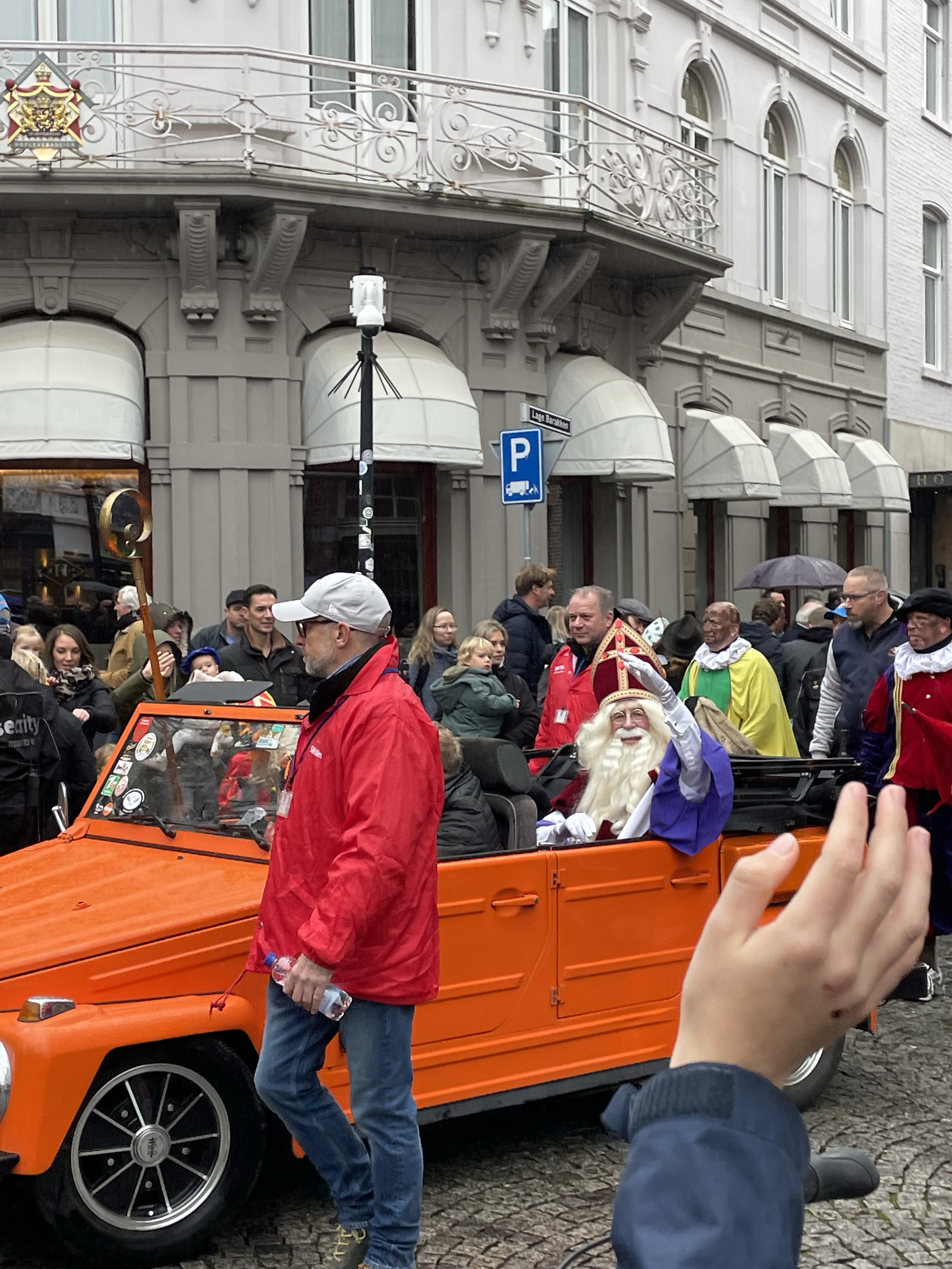 A little over a week ago, Sinterklaas arrived in Maastricht. He comes first by boat and then rides around the city where people line up to sing to him and sometimes receive candy from his helpers, the Piets. You mostly see the youngest of children out for this affair, but being that we’ve never experienced it and had no idea what it would be like, we drug our kids out of the cozy house and into the rainy cold morning in the effort to witness “something very Dutch”. It is very festive, kids (and some parents) are in costumes, everyone is singing – it is a nice way to feel the holidays. The Dutch also have a controversial history of painting their faces black, as their version of Santa’s helper is Zwarte Piet (Black Pete). This is a rabbit hole I’m not going too far down on this post, but the Dutch emotions are strong on this. Much of the Netherlands has phased out and even prohibited the painting of faces black but the custom still hangs on, primarily in southern cities. Many times you see a compromise – a sooted Piet, if you will, with the explanation that he’s sooty from the fireplace. At any rate, seeing, reading, and learning about all this has been really interesting!