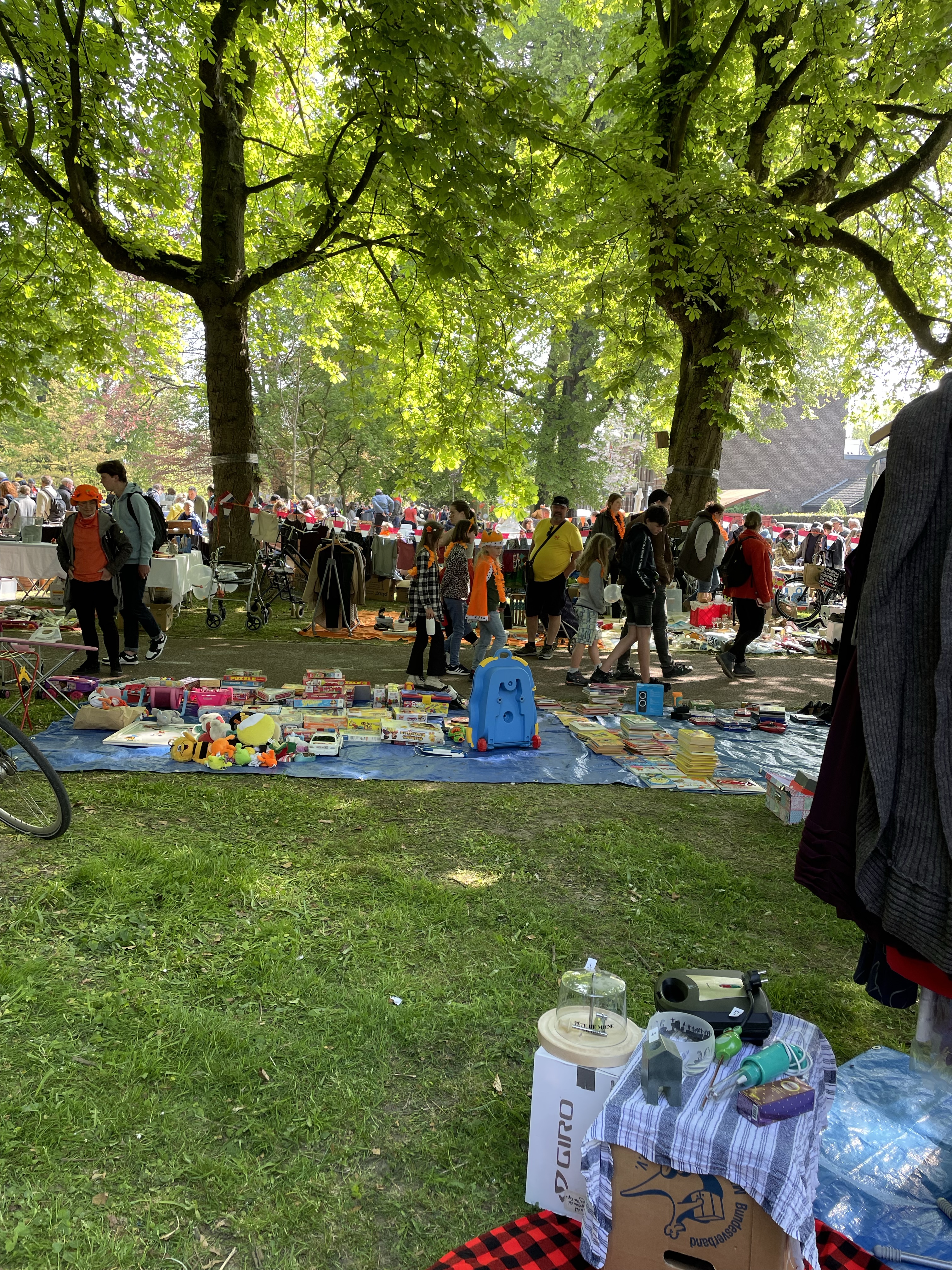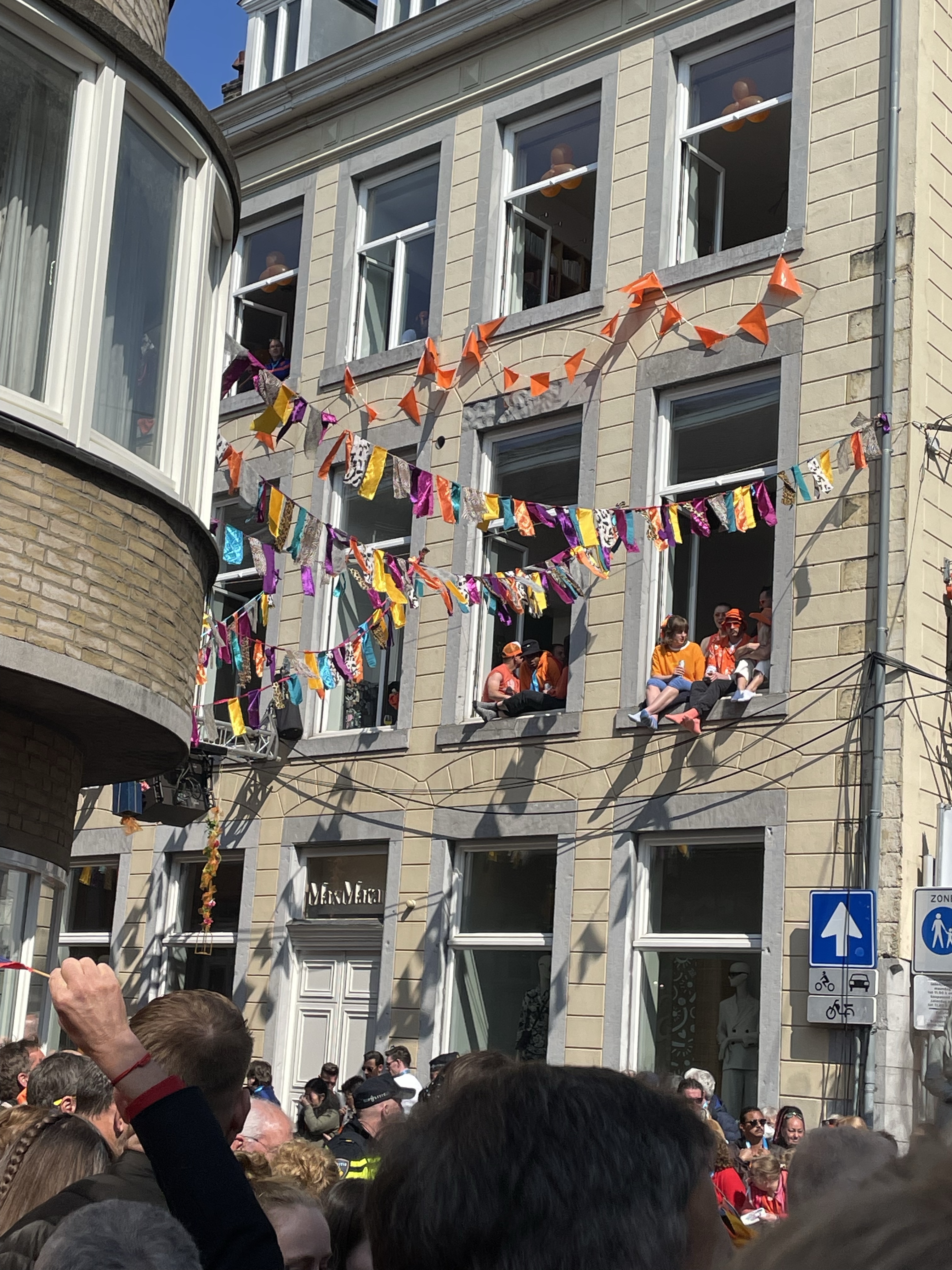 King’s Day is a celebration of the the Dutch King’s birthday. As an American I have some innate anti-royal sentiment (who needs a ruling family?), and I think many in our region of the Netherlands feel similarly on most days. That being said, the King chose Maastricht as the city to celebrate his “big day” and the city showed up for it. Everyone was decked out in orange (the royal family color, stemming from the first “founding fathers” of the Netherlands, the House of Orange-Nassau and Willem of Orange, crowned Prince of Orange in 1544) and Dutch flags were everywhere. Some have said it is similar to a July 4th celebration, but I would say it feels a little more like a St. Patrick’s day celebration, just in orange and with a massive day-long yard sale that is organized by the city in one of the big parks. There’s also a super long parade with some bands where the King and his family walk a route to greet the citizens, there are live concerts throughout the city and almost every one gets the day off. I say almost because many restaurants were still open (maybe because they’re agnostic about the King) and that’s not always the case for Dutch holidays.