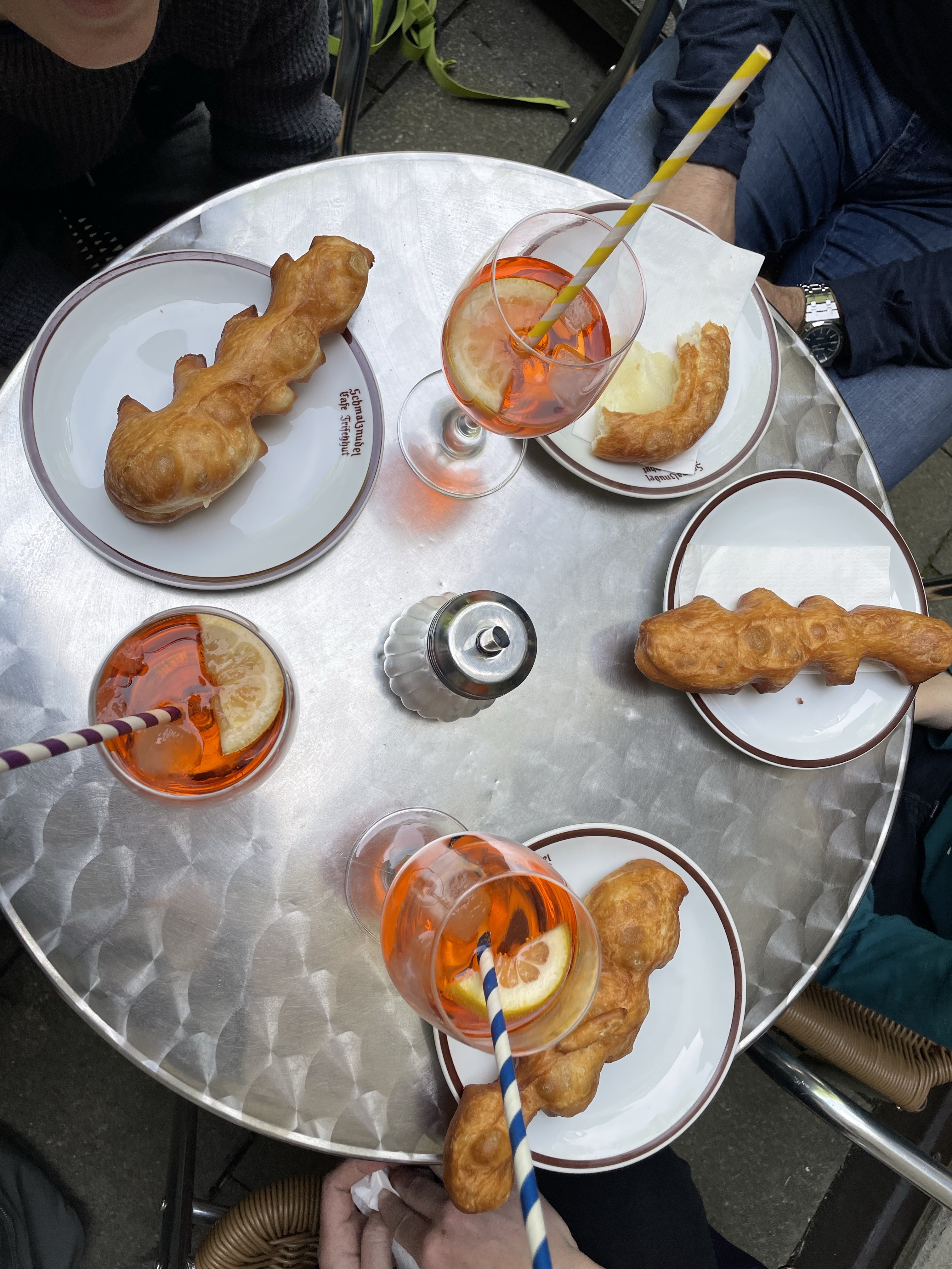 Schmalznudel Café Frischhut This was Maggie’s recommendation for Bavarian donuts after our tour of the St. Peter’s Church. Everyone was happy with this afternoon treat.