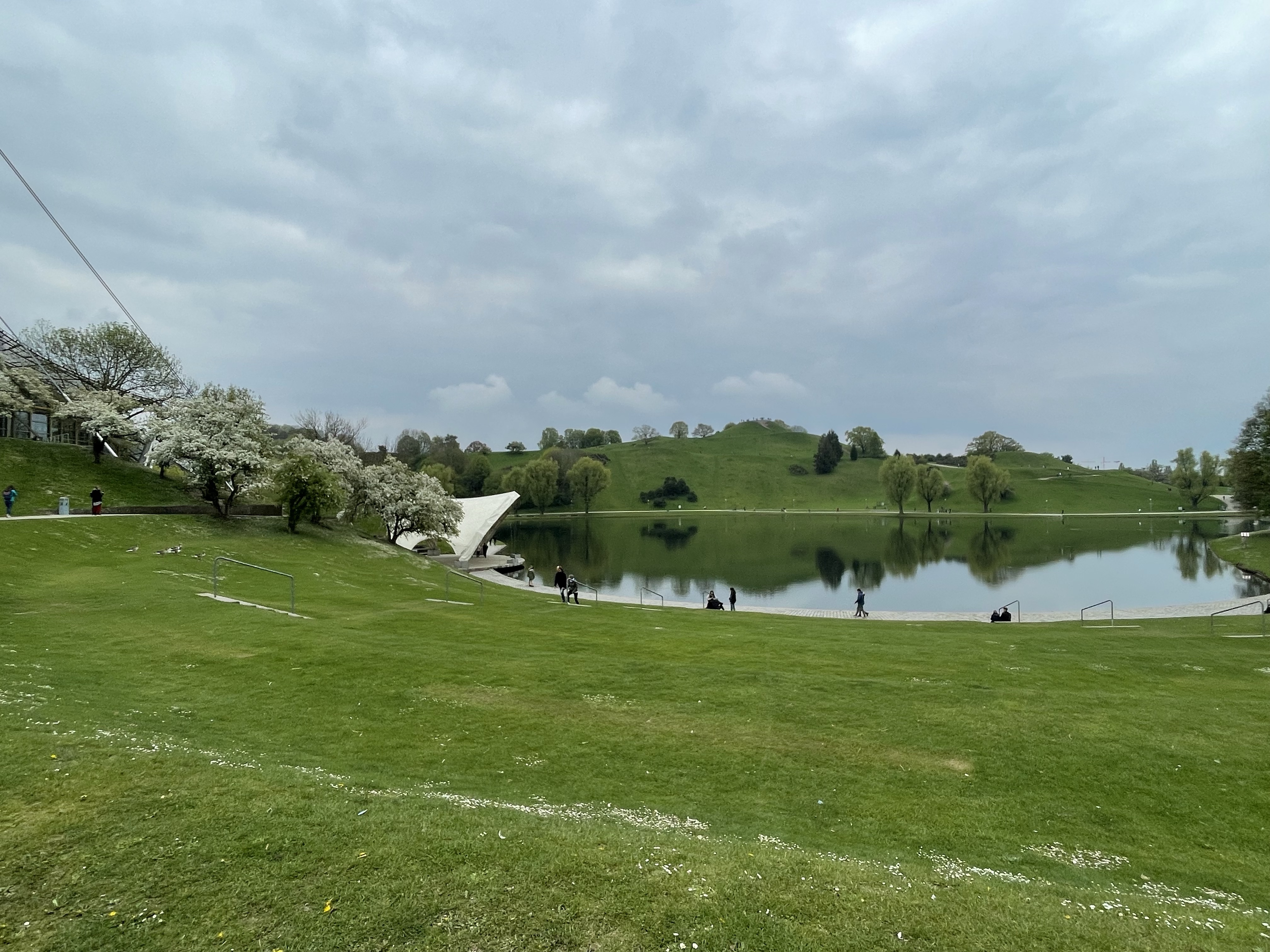 - Olympiapark München. This gorgeous expansive park area was created when Munich hosted the Summer Olympics in 1972. There’s now amphitheater space for concerts, which Ben says the city often hosts for free, there’s a million running paths, a lake, and a large hill overlooking the city. There’s a stadium that is rarely used now, but the rest of the infrastructure is still utilized, like the Olympic pool and the athlete housing (also the site of the 1972 Black September massacre), which is now used as high demand apartment housing and student housing. The rolling hills around this park were partially man-made, Maggie said, as the rubble from WWII destruction was piled up and semi buried here. This area is quite a ways from the city center, so if you are there you may want to take a train or tram. It is definitely worth seeing, and, if you have more control of your time, going for a run.