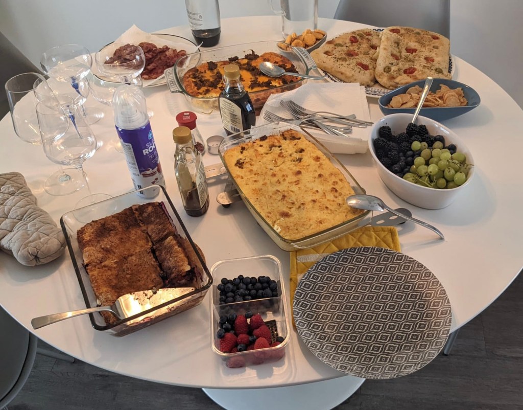We recently hosted our neighbors and introduced them to my version of shrimp and grits, a traditional Charleston recipe that I typically make for holidays or special occasions. A friend of mine back home sent me a care package a while back that included a bag of grits so I decided to have these Austrian and Italian friends try them out. Overall, they were a hit! Luna also made homemade focaccia bread, and Tina made a french toast that we all devoured.